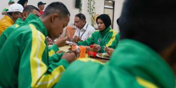 Portalnusa.id – Menteri Pemuda dan Olahraga Republik Indonesia (Menpora RI) Zainudin Amali melakukan santap siang bersama para atlet program Desain Besar Olahraga Nasional (DBON) di Sentra Latihan Olahragawan Muda Potensial Nasional (SLOMPN) Universitas Negeri Surabaya (Unesa), Surabaya, Jawa Timur, Selasa (17/1).