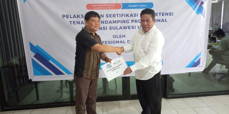 PortalNusa.ID, Sulawesi Utara | Sebanyak 138 Tenaga Pendamping Profesional (TPP) Kemendes PDT di Provinsi Sulawesi Utara mengikuti sertifikasi yang dilaksanakan Lembaga Sertifikasi Profesi Profesional Desa Buana (LSP Pro DB) dari tanggal 18-20 Maret 2025, TUK bertempat di Gedung Dewan Perwakilan Daerah Republik Indonesia (DPD RI) Provinsi Sulawesi Utara.