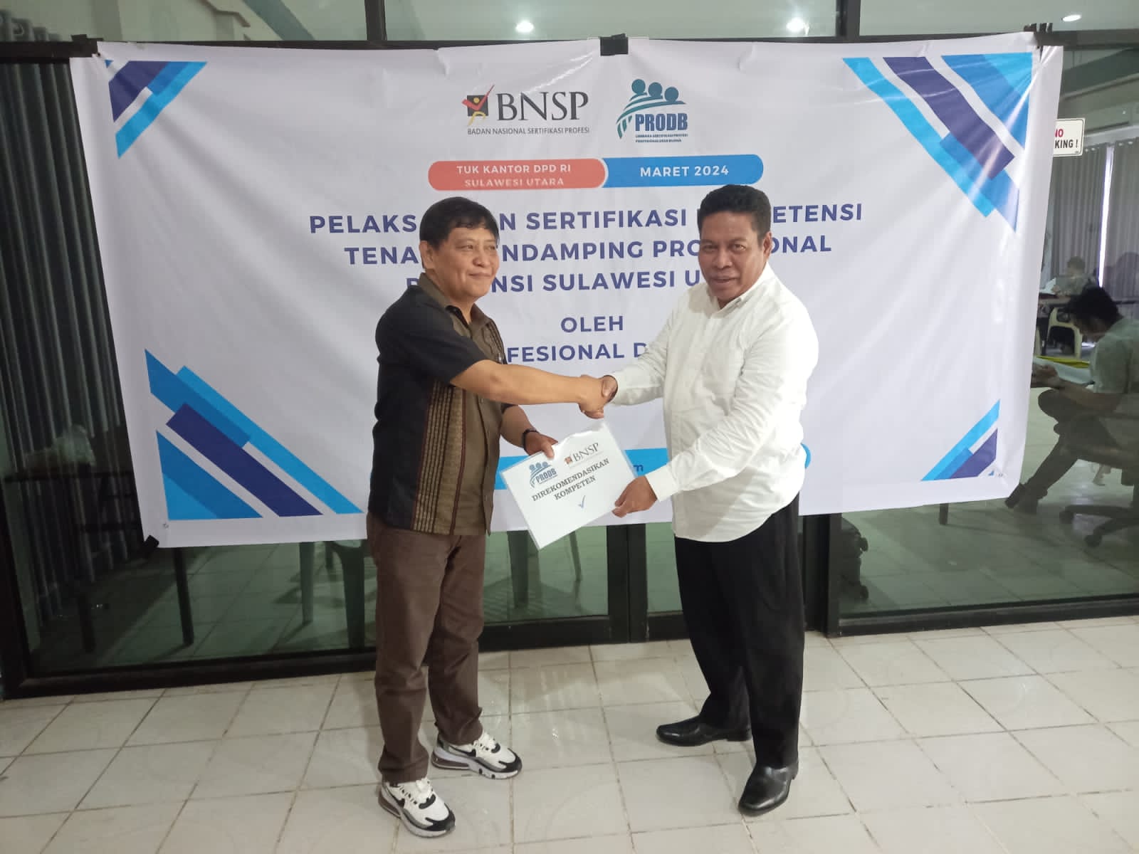 Koordinator TA Provinsi Defri Ronald Supit menambahkan, pelaksanaan sertifikasi kompetensi oleh LSP Pro DB telah berjalan dengan baik, profesional dan sesuai dengan peraturan yang berlaku. Di lain hal kami juga mendapat kelonggaran dalam pembiayaan sertifikasi.