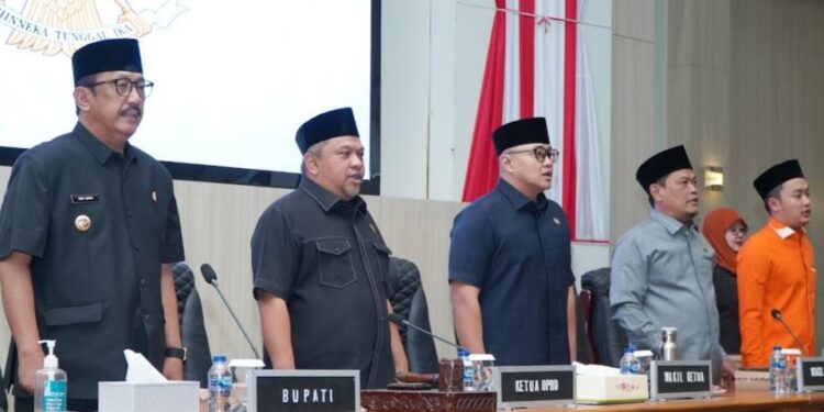 PortalNusa.ID, Sukabumi | Dewan Perwakilan Rakyat Daerah (DPRD) Kabupaten Sukabumi bersama Pemerintah Kabupaten Sukabumi menggelar Rapat Paripurna ke-12 Tahun Sidang 2025, yang berlangsung pada Senin (14/04/2025) di Ruang Rapat Utama Gedung DPRD.