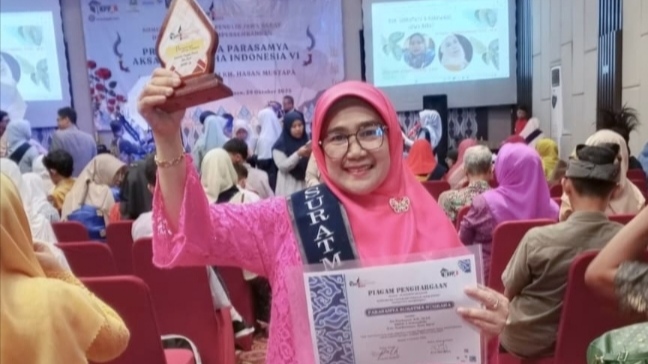 Bandung – Suasana hangat dan penuh kebanggaan menyelimuti Hotel Travello Kota Bandung, Minggu, 26 Oktober 2025, ketika Komunitas Pengajar dan Penulis Jawa Barat (KPPJB) menggelar ajang bergengsi Parasamya Anugerah Aksara Indonesia VI. Dalam momen itu, salah satu nama yang kembali naik ke panggung penghargaan adalah Eti Nurhayati, S.S., M.Pd., tokoh literasi dan pendidik asal Kabupaten Tasikmalaya.